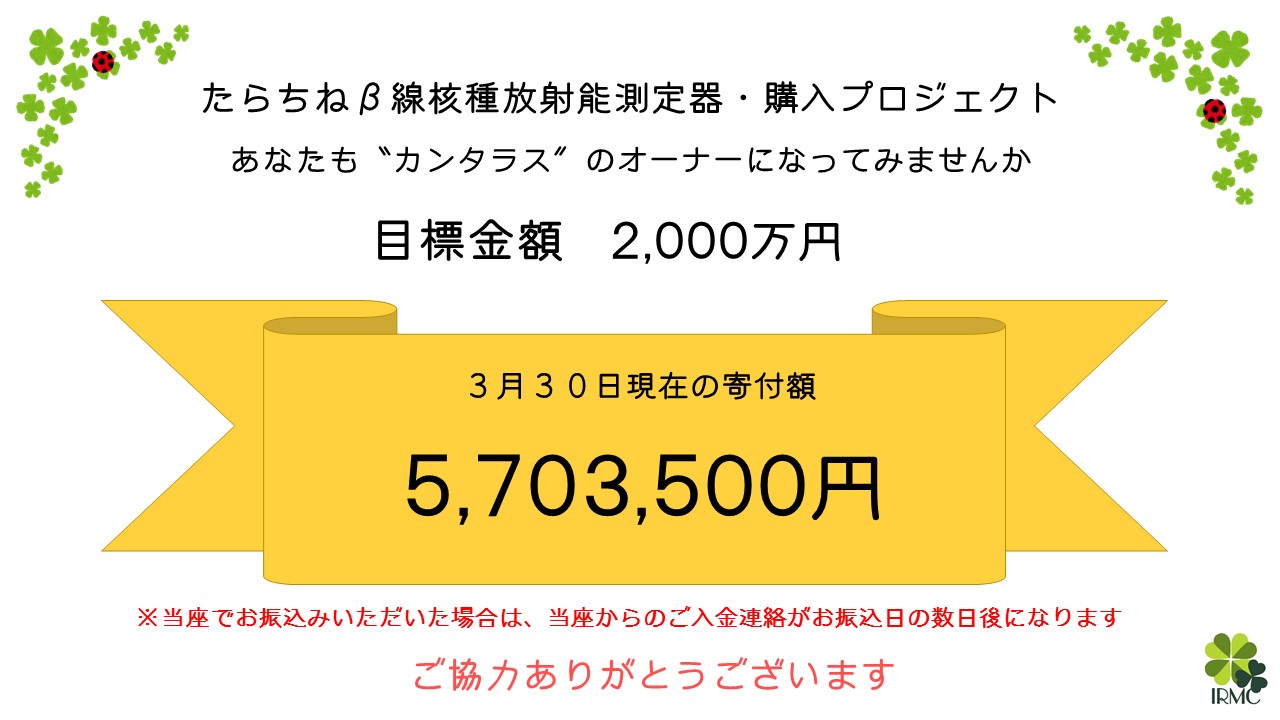 日本初の「民間の放射能測定室兼検診センター」を作りたい★という目的で始まったクラウドファンディングも残すところあと3日となりました。