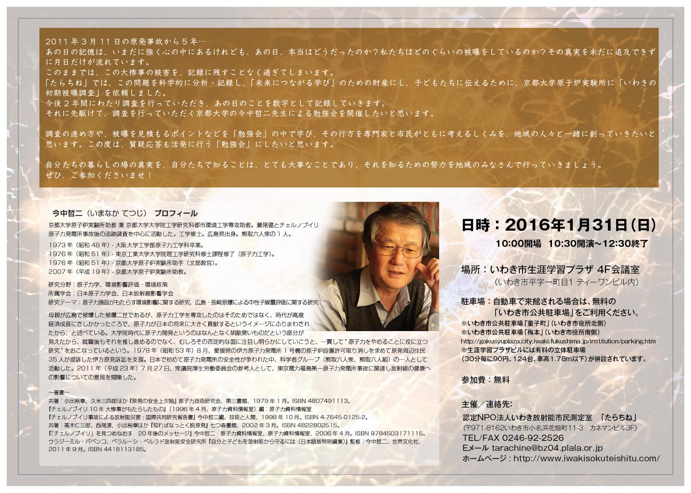 今中哲二 勉強会 『事故直後の被曝量をいまから見積もる試み:飯舘村といわき市』 のお知らせ