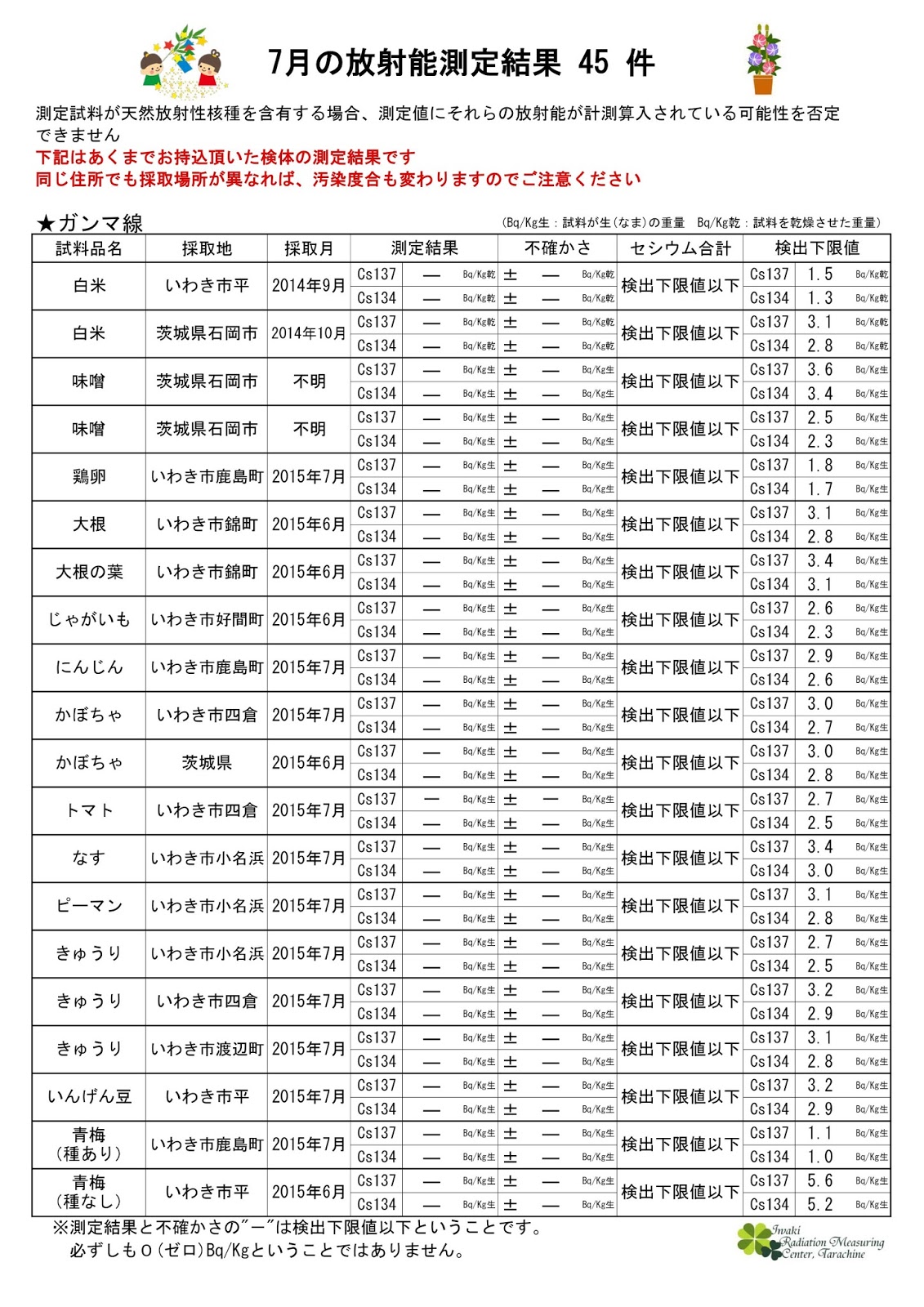 2015年から「たらちね」ではストロンチウム90・トリチウムの測定を開始いたしました。