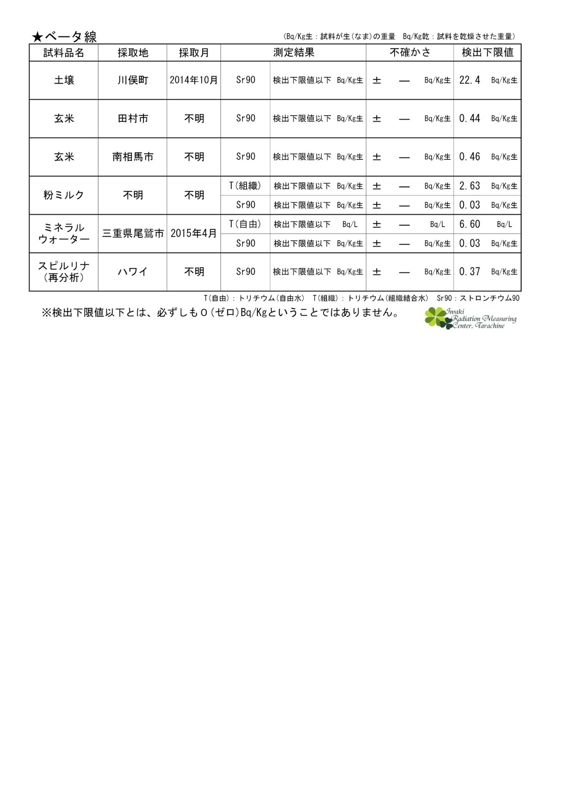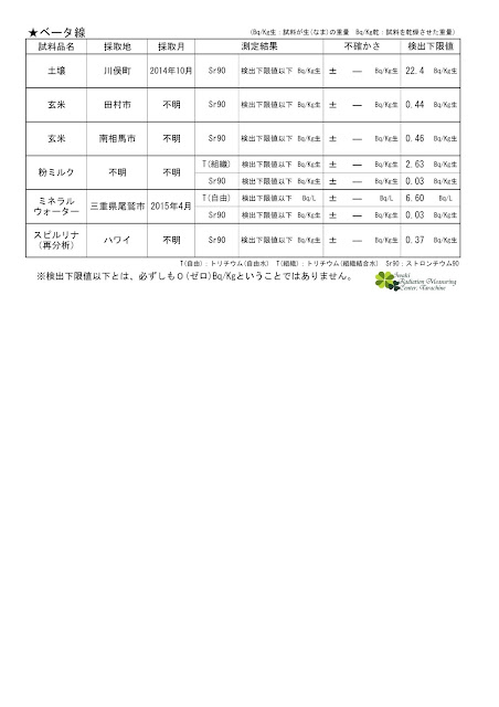 2015年から「たらちね」ではストロンチウム90・トリチウムの測定を開始いたしました。