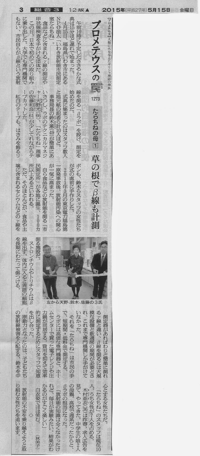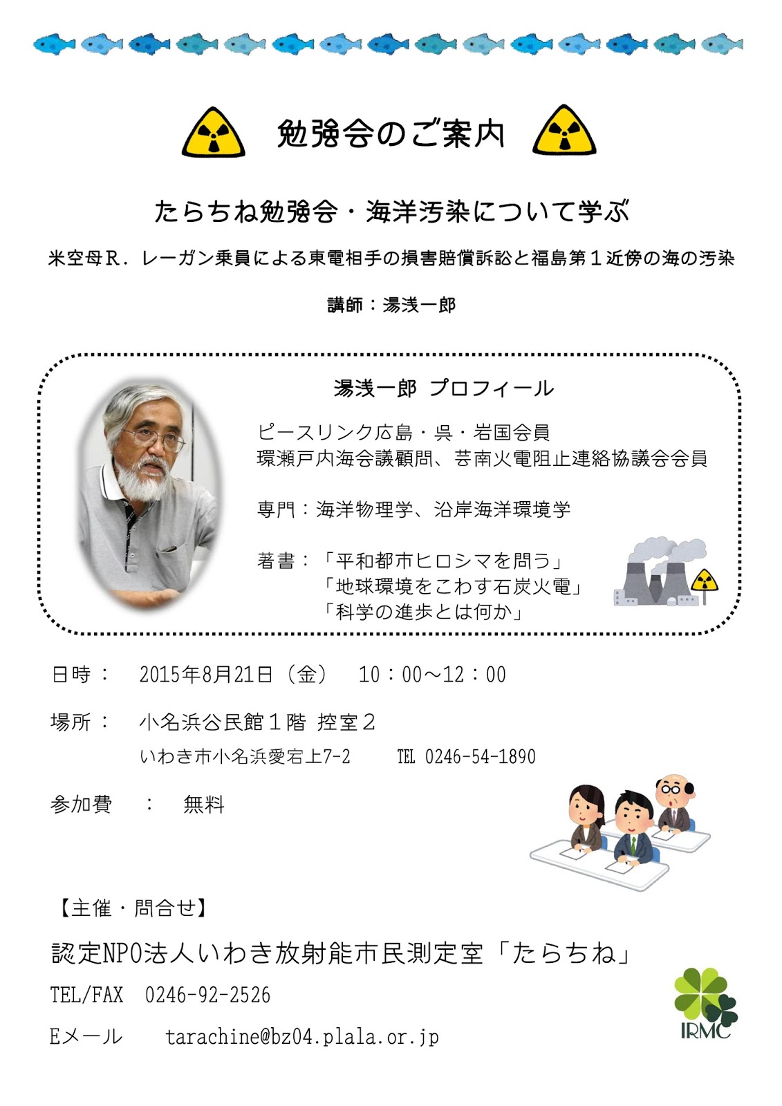 主催/問合わせ:認定NPO法人いわき放射能市民測定室「たらちね」〒971-8162いわき市小名浜花畑町11番地の3