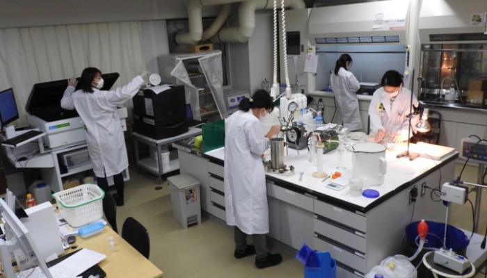 放射能測定室に行くと、多くの測定器に囲まれてスタッフの方が熱心に作業する様子が印象的でした。