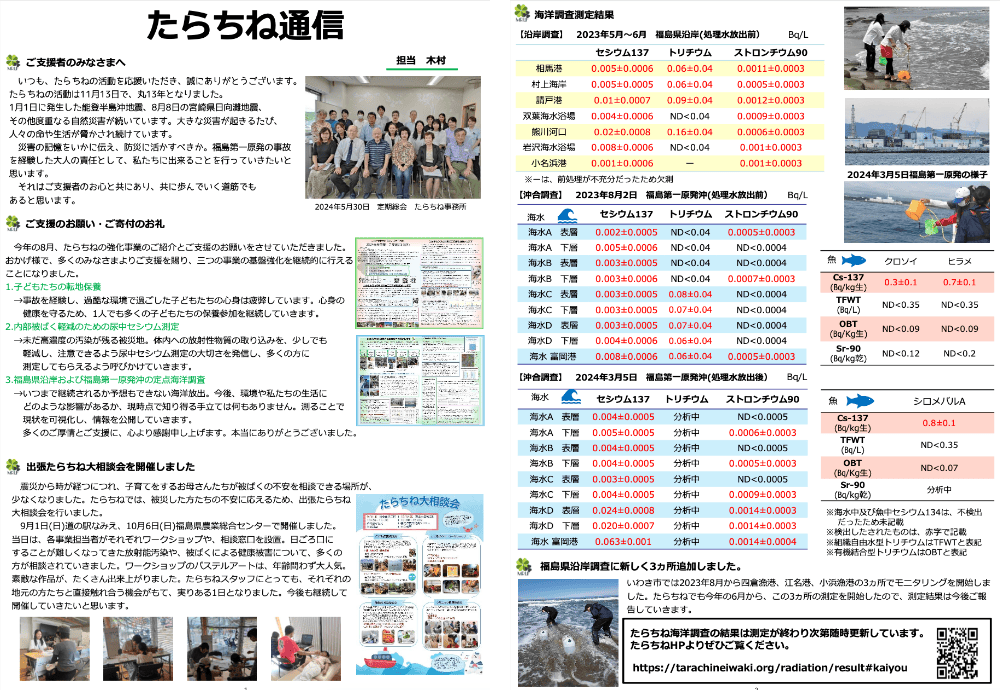 - 震災直後、子どもたちを守るために自分たちで動かざるを得なかったお母さんたちが、今では、国が担うべき仕事を粛々と行っています。たらちねが日々蓄積しているデータや知見は、必ず、今と未来の子どもたちを支えます。どうか、一緒に応援してください。