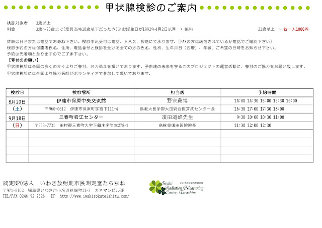 甲状腺検診につきましては全国の多くの方々よりご寄付、お力添えを頂いております。