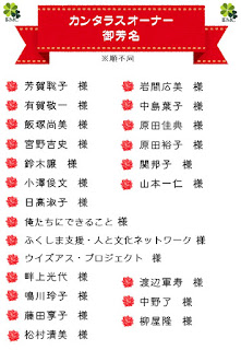 カンタラスオーナーの皆さまです(6月10日現在) たらちねβ線核種放射能測定器・購入プロジェクト 6月10日現在の寄付額 11,248,500円 オーナー様は86名です(順不同) 新規オーナー様 続々と増えております。ご協力ありがとうございますm(__)m 子どもたちへの大切なメッセージを伝えるために放射能測定器〝カンタラス″の購入にご協力をいただき、放射能測定活動にぜひ参加なさってください。 カンタラスオーナーについて詳しくはこちら↓ http://tarachineiwaki.blogspot.jp/2016/01/new_27.html