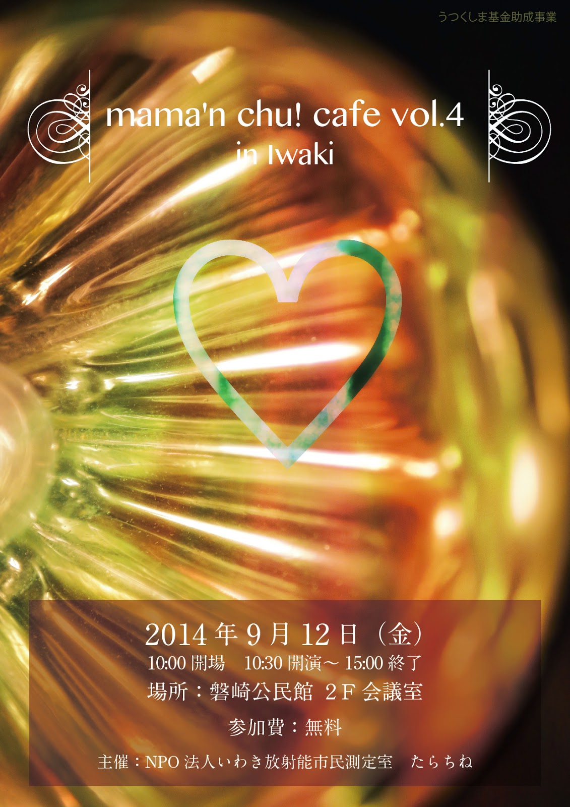 原発事故後の出会いの場として開催してきたママンチュカフェも、今回で4回目を迎えます。なかなか声に出して話しにくくなってしまっている放射能への不安も、ここでならオープンに話すことができると、子育て中のママを中心に、このカフェの開催を待ち望む声がたくさん届くようになりました。また、貴重な情報を得る場としても好評を頂いております。